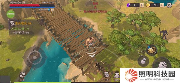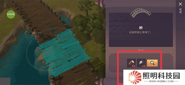 2、然后跟隨著任務來到斷橋處,你需要使用材料來對斷橋進行修復。