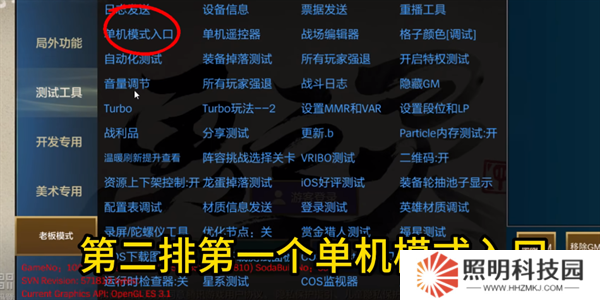 2、這個(gè)時(shí)候會(huì)打開一個(gè)內(nèi)置的菜單,測(cè)試工具模塊里面會(huì)存在一個(gè)【單機(jī)模式入口】的選項(xiàng),點(diǎn)擊之后就可以進(jìn)入到單機(jī)模式。