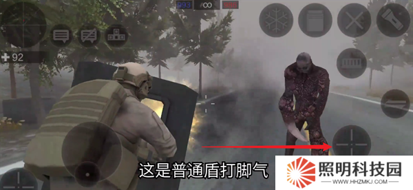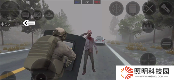 1、當僵尸接近的時候,可以點擊右下角的攻擊按鍵來將僵尸擊退。