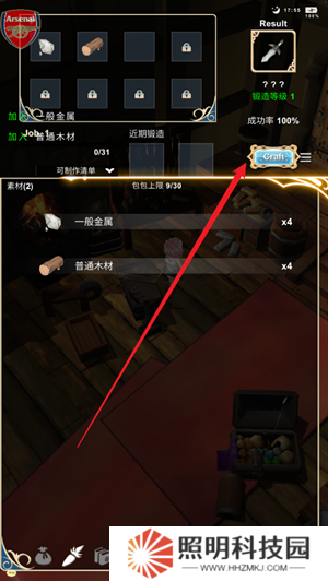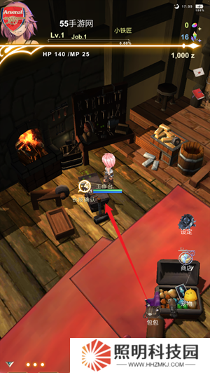 4、然后你會(huì)以小鐵匠的身份來進(jìn)行自己的冒險(xiǎn),在正式出門之前可以使用工作臺(tái)來進(jìn)行鍛造。