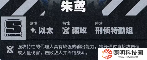 若隊伍中存在【支援】特性代理人或其他隸屬【刑偵特勤組】的代理人,朱鳶發動強化特殊技、連攜技或終結技時,將在一定時間內提升自身暴擊率。