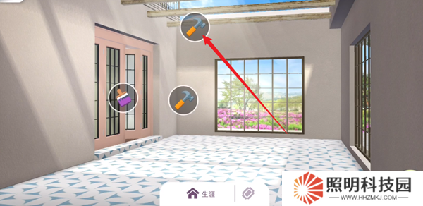 4、點擊地板上嗎的錘子圖標就能夠將這里的地板進行更換。