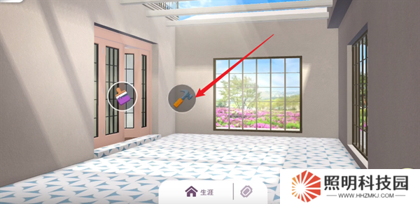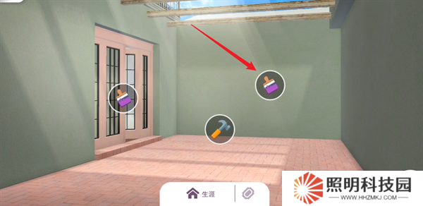 3、點擊墻壁上面的刷子圖標來為房間換上全新的壁紙。