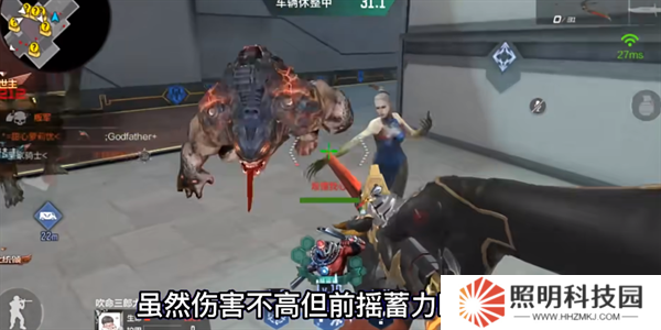 2、切換到遠(yuǎn)程形態(tài)之后,會(huì)手持兩個(gè)加特林,并對(duì)命中的敵人造成高頻率的射擊傷害。