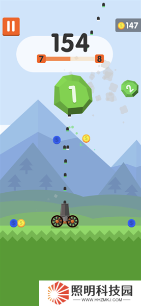 1.在關(guān)卡之中控制火炮的位置來對掉落的石頭進(jìn)行射擊,擊碎越多的石頭所能夠獲取到的分?jǐn)?shù)也越多。