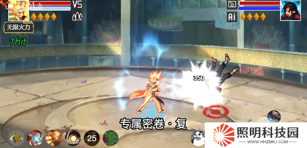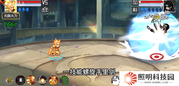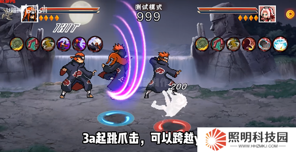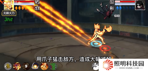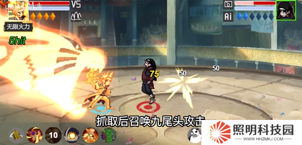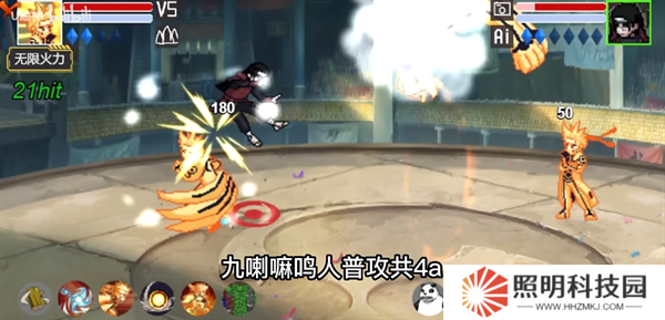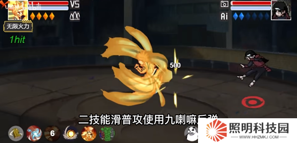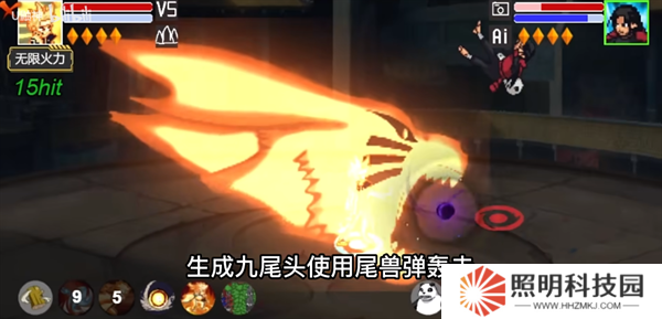 反彈接一技能,生成九尾頭使用尾獸彈轟擊。