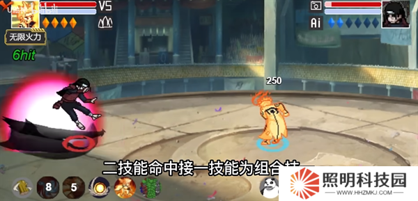 1a苦無橫斬,2a二連踢,3a結(jié)印變成烏鴉沖擊攻擊并留下分身,4a回頭使用天照終結(jié)。