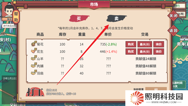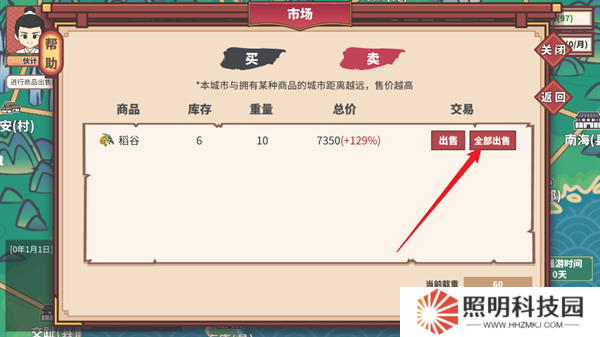 13、來(lái)到新的城市之后點(diǎn)擊城市界面的市場(chǎng),再點(diǎn)擊其中的【賣】。