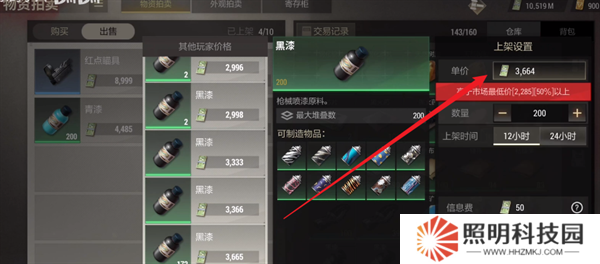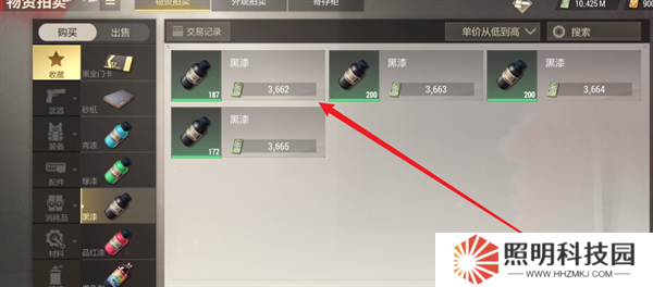 5、然后不斷的刷新交易行,時刻確保自己的黑漆是最低價,如果有人上架了更低價的黑漆,則將其買干凈。