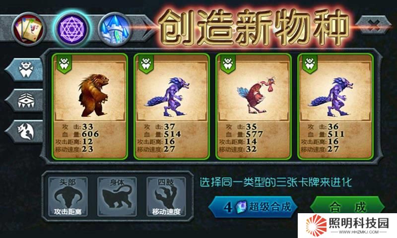 2.游戲內(nèi)部還會存在著一個(gè)合成系統(tǒng),你將可以使用多個(gè)不同類型的動物卡牌,來將其合成出一個(gè)強(qiáng)大的融合物種。
