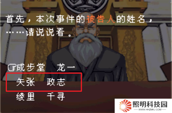 5、開(kāi)始問(wèn)話(huà)之后就要選擇正確的答案,本次事件的被告人姓名選擇【矢張政志】。
