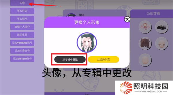 8、然后點擊左側的頭像,并在彈窗中選擇【從專輯中更改】。