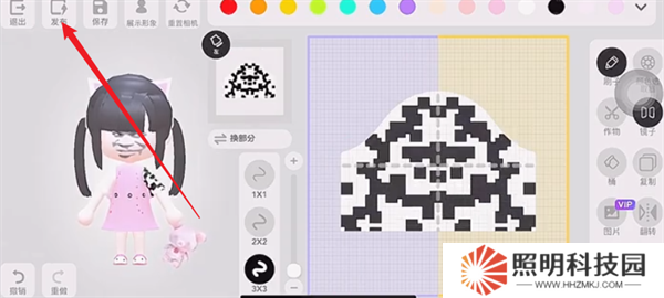 13、如果對自己的衣服射設計完畢之后,就能夠點擊左上角的【發布】進行保存。