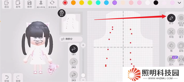 5、點擊右邊的【刷子】功能,能夠對自己衣服上的圖案進行繪制,左側會存在刷子粗細的選擇。