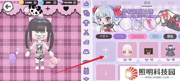 2、在形象的編輯界面會存在著各種不同類型的服飾或者裝扮供你進行挑選,點擊右側的加號。