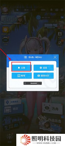 2、接著玩家們在彈出的界面中點(diǎn)擊公告選項(xiàng)。