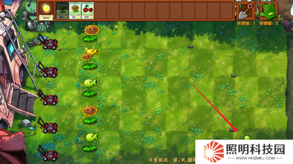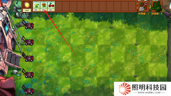 4、進(jìn)入關(guān)卡之后,就要點(diǎn)擊自己的植物卡牌來(lái)構(gòu)建自己的防線。