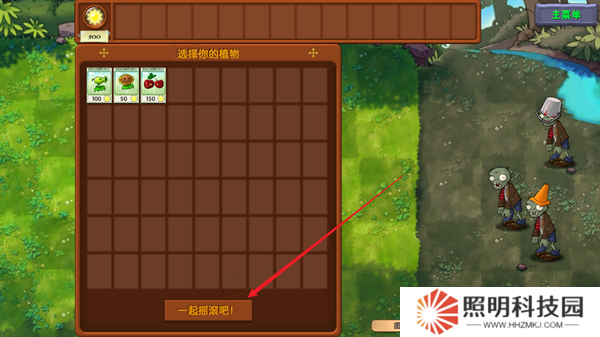 3、開(kāi)始游戲之前,你需要挑選自己使用的植物卡牌,完成之后就點(diǎn)擊下方的一起搖滾吧。
