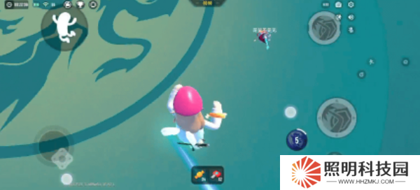 4、離開巴士在空中飛行的時(shí)候,我們可以按住并拖動(dòng)「觀察按鈕」觀察其他玩家動(dòng)向,從而調(diào)整己方落點(diǎn)。