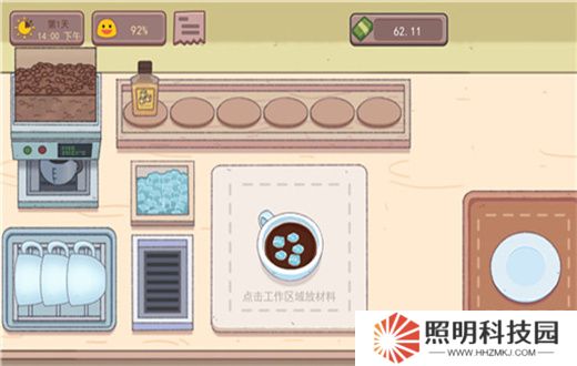 1、首先我們點擊左上角的第一個咖啡豆,沖泡一杯咖啡