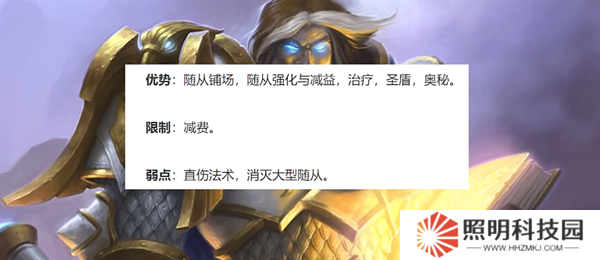 為隨從提供強化、治療和圣盾,然而如有必要他們也不怕親自動手,能通過減益效果和集中攻擊控制戰場,力量和堅韌就是圣騎士取勝的關鍵。
