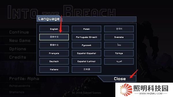 3、其中會存在著多種不同類型的語言選擇,點(diǎn)擊其中的簡體中文,然后點(diǎn)擊Close。
