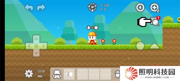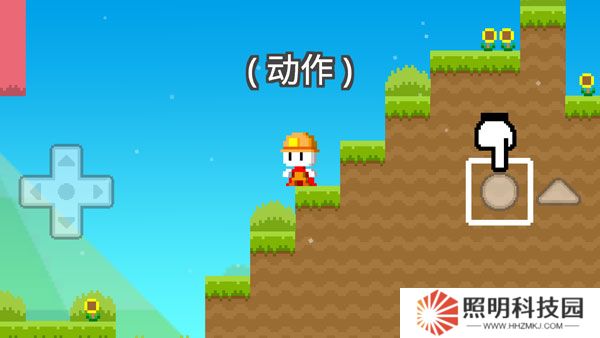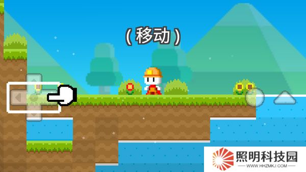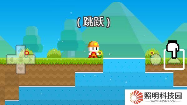2、點擊右下角的三角按鈕,可以讓角色在場景當(dāng)中進(jìn)行跳躍。