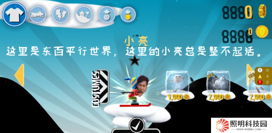 小亮大冒險最新版是一款同人制作的休閑闖關游戲,玩家將使用來自東北的小亮進行滑雪冒險,同時背景音樂和各種元素被替換,玩家可以看到非常有趣的場景,許多熟悉的角色將出現在這里,為玩家提供許多笑話和滑雪冒險,
