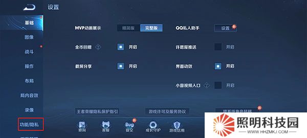 2、進入到設置界面后,點擊右下角的功能/隱私選項。