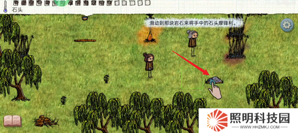 5、點擊巖石來進行交互,將手中的石頭磨尖。