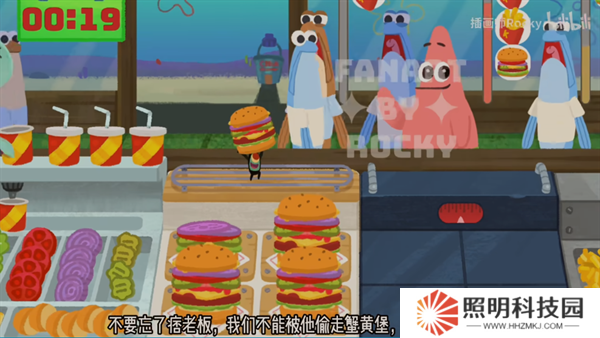 5、玩家們還需要提防痞老板,他會偷取我們制作的美味漢堡。