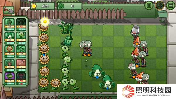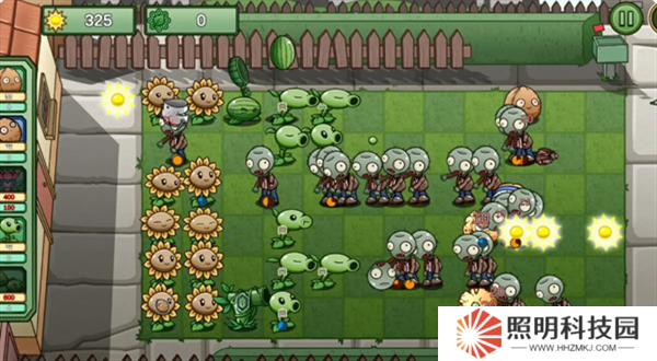 3、玩家們需要收集場景中掉落的陽光,用于購買各種植物進行種植抵御僵尸的進攻。