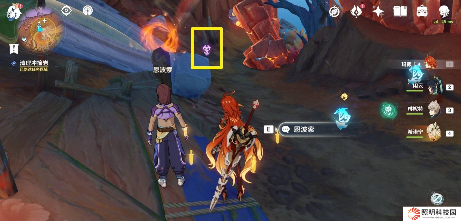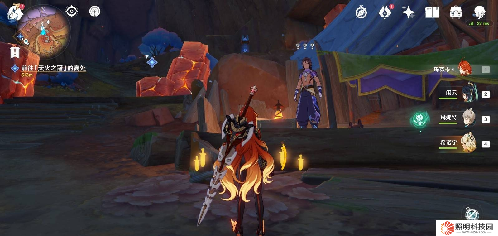 2、在傳送點(diǎn)附近,你會(huì)看到一名頭上帶有“???”標(biāo)志的NPC,靠近并對(duì)話,即可成功觸發(fā)任務(wù)“碎巖及其往事”。