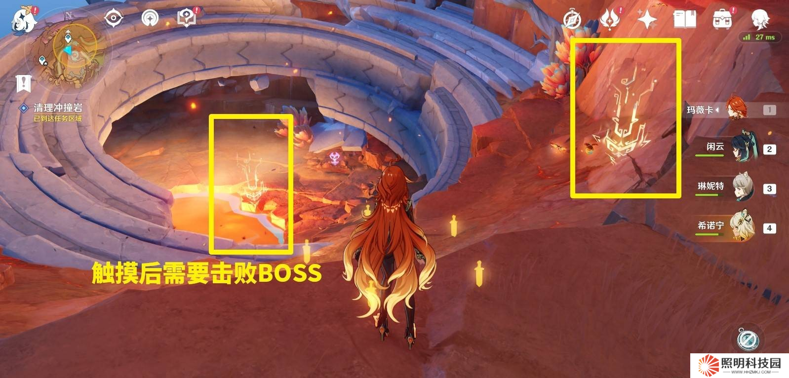 其中一個(gè)光標(biāo)會(huì)觸發(fā)BOSS戰(zhàn),擊敗BOSS后,再次觸摸光標(biāo)即可完成機(jī)關(guān)。