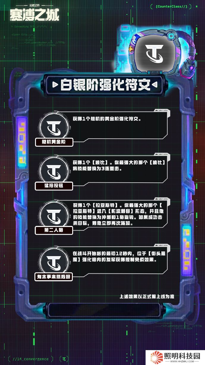 云頂之弈即將迎來S14賽季賽博之城,在這個賽季將會上線全新的白銀階強化符文,那么大家知道白銀階強化符文究竟是怎么樣的呢?下面快跟隨本站小編為大家帶來的云頂之弈S14白銀階強化符文吧。