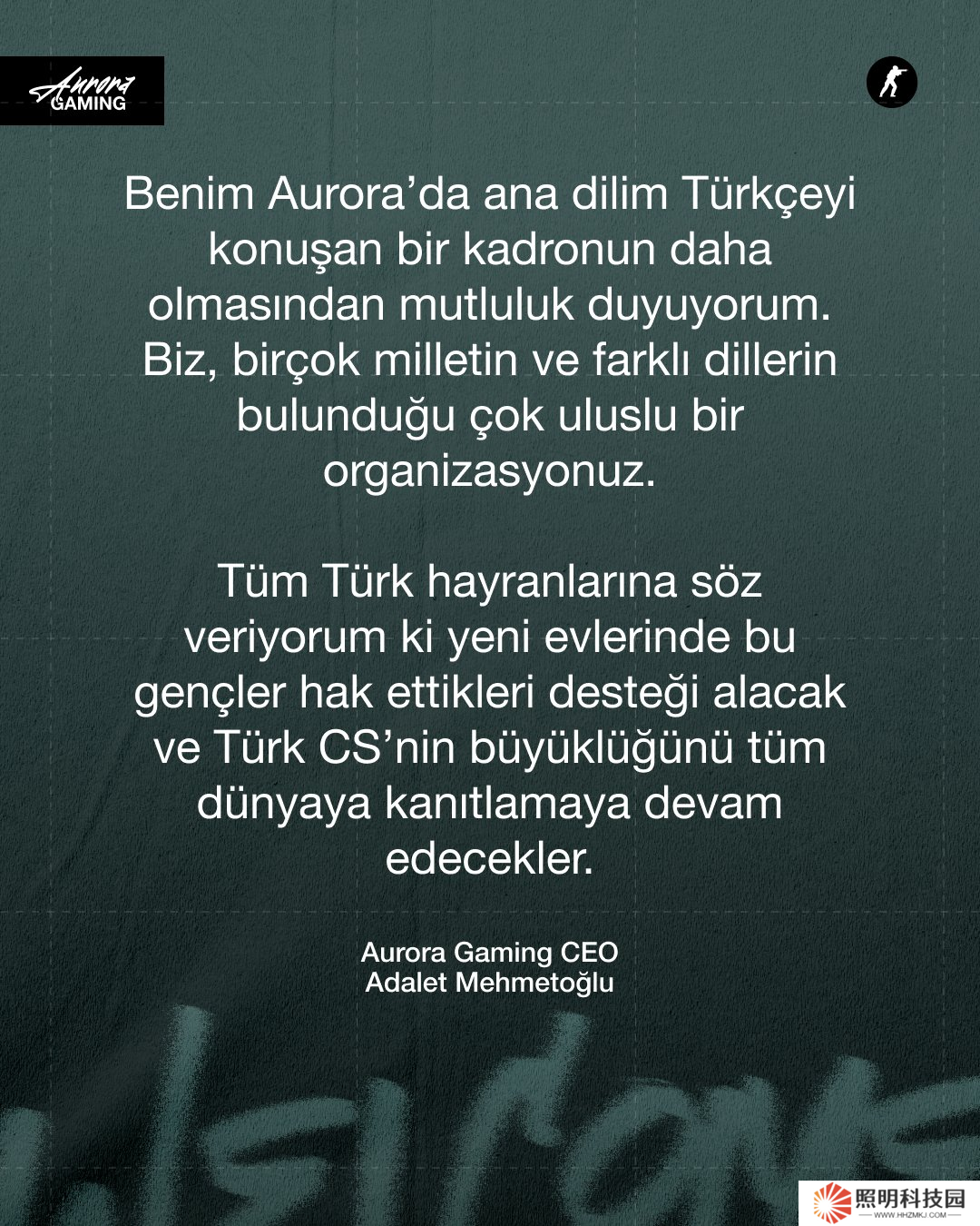 在這里我向所有土耳其粉絲承諾,這些年輕選手們將在他們的新家獲得應有的支持和保障,并繼續向全世界證明土耳其CS的偉大。”