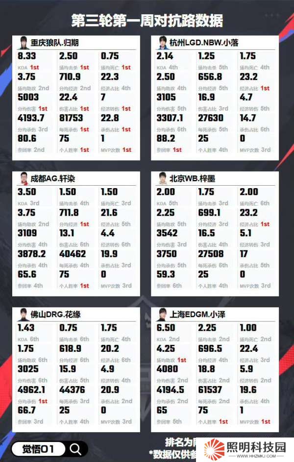 第三輪各位置數據:歸期十項第一,大帥八項數據第一,花卷九項數據第一