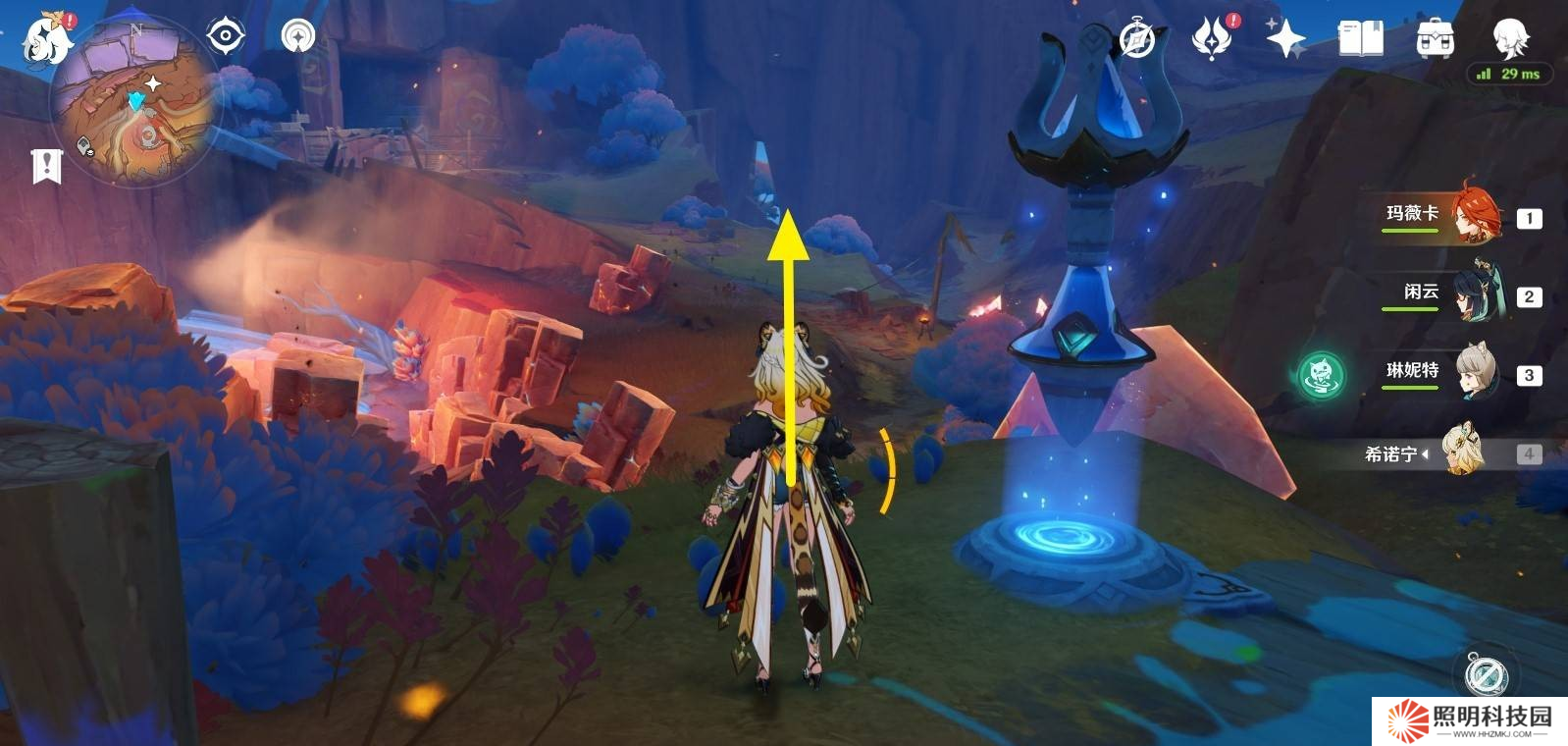 3、到達前方的傳送錨點后,激活錨點,隨后沿著右側道路繼續前行。