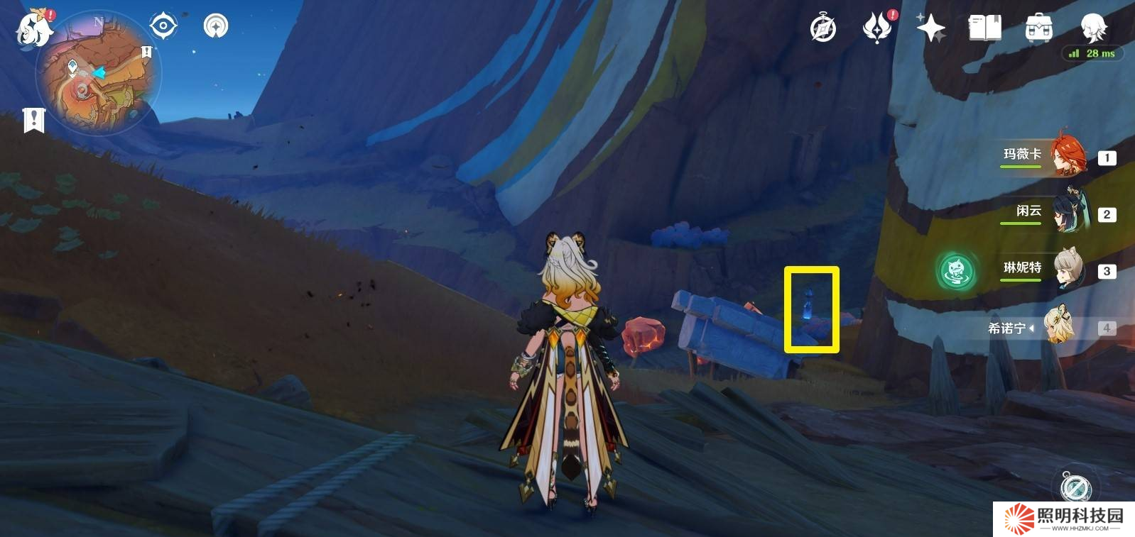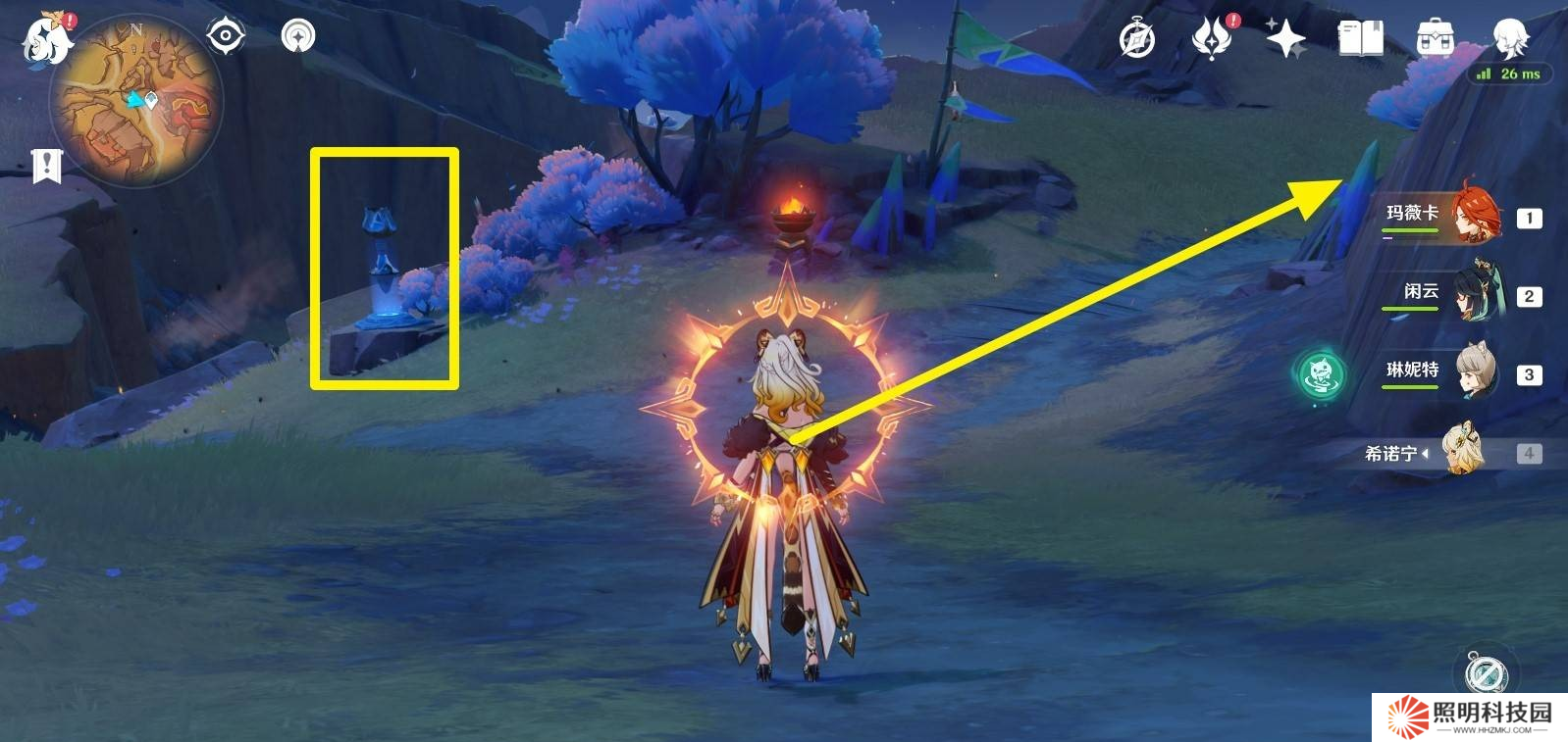 4、穿過石頭障礙后,繼續沿主路走,在右側可以看到一個新的傳送錨點,靠近后激活它。