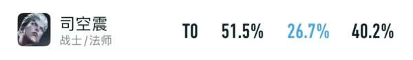 以上是司空震目前的巔峰賽數(shù)據(jù),BP率高達66.9%,優(yōu)先級遙遙領(lǐng)先就算了,勝率還有51.5%,屬實真正的“版本大爹”。
