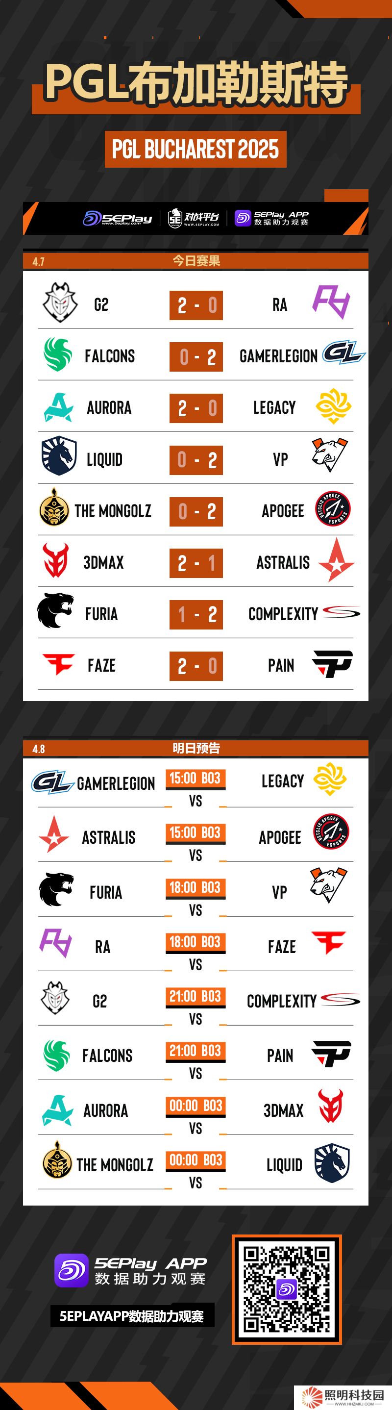 明日RA將迎戰(zhàn)FaZe、G2將對陣COL,晚些還有Falcons、The MongolZ等隊(duì)的比賽,敬請收看。
