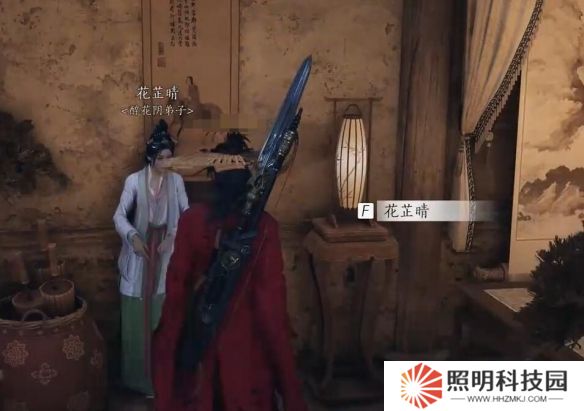 2、拿到后往回走來到該位置進入房子,在里面找到NPC【花芷晴】;