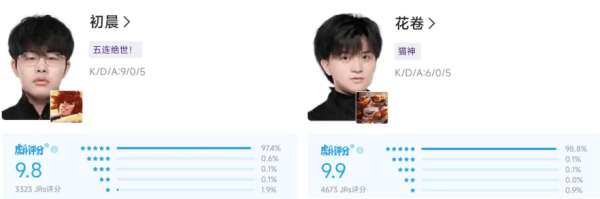 初晨這個(gè)當(dāng)年以野核出道的“大魔王”、“晨導(dǎo)”,職業(yè)生涯的前兩個(gè)五殺卻都是用射手拿的,一個(gè)自由人時(shí)代的打野李元芳、一個(gè)野射搖擺時(shí)期的馬可。而在本周對(duì)陣到北京WB的第一局,初晨用裴擒虎打出了9-0-5的超神戰(zhàn)績(jī),并時(shí)隔六年拿到自己職業(yè)生涯的第三個(gè)五殺。成為KPL第二位三次拿到五殺的選手的同時(shí),也終于用野核實(shí)現(xiàn)了五殺。
