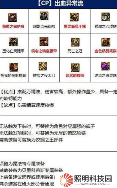 2.然后第二套是異常出血流量,可以看到隱光肩墊,暗影流光戰袍,黑靈纏繞手鐲,領域之心項鏈,玉華亡靈護腿甲,信仰呼吸帶,死亡之冠,血色水晶切斷,閃爍鬼影短靴,勝敗之劍,詛咒之鐐銬,逆流之魂珠。