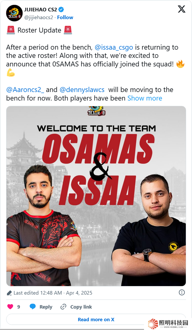 這不是ISSAA第一次離開JiJieHao戰隊的首發陣容了。這位約旦選手在2024年9月離開戰隊,2025年2月被移至替補席,不過在這兩次之后他都又回歸了。