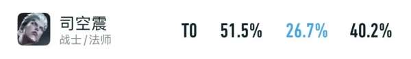 以上是司空震目前的巔峰賽數據,BP率高達66.9%,優先級遙遙領先就算了,勝率還有51.5%,屬實離譜。
