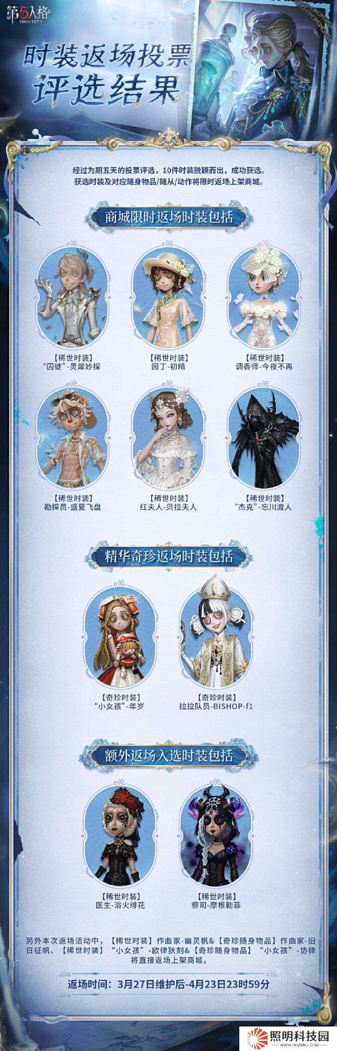 以上就是本站為大家?guī)?lái)的第五人格皮膚返場(chǎng)投票結(jié)果3月解答,大家都了解了嗎?還想要了解更多的內(nèi)容那就請(qǐng)繼續(xù)關(guān)注本站吧。