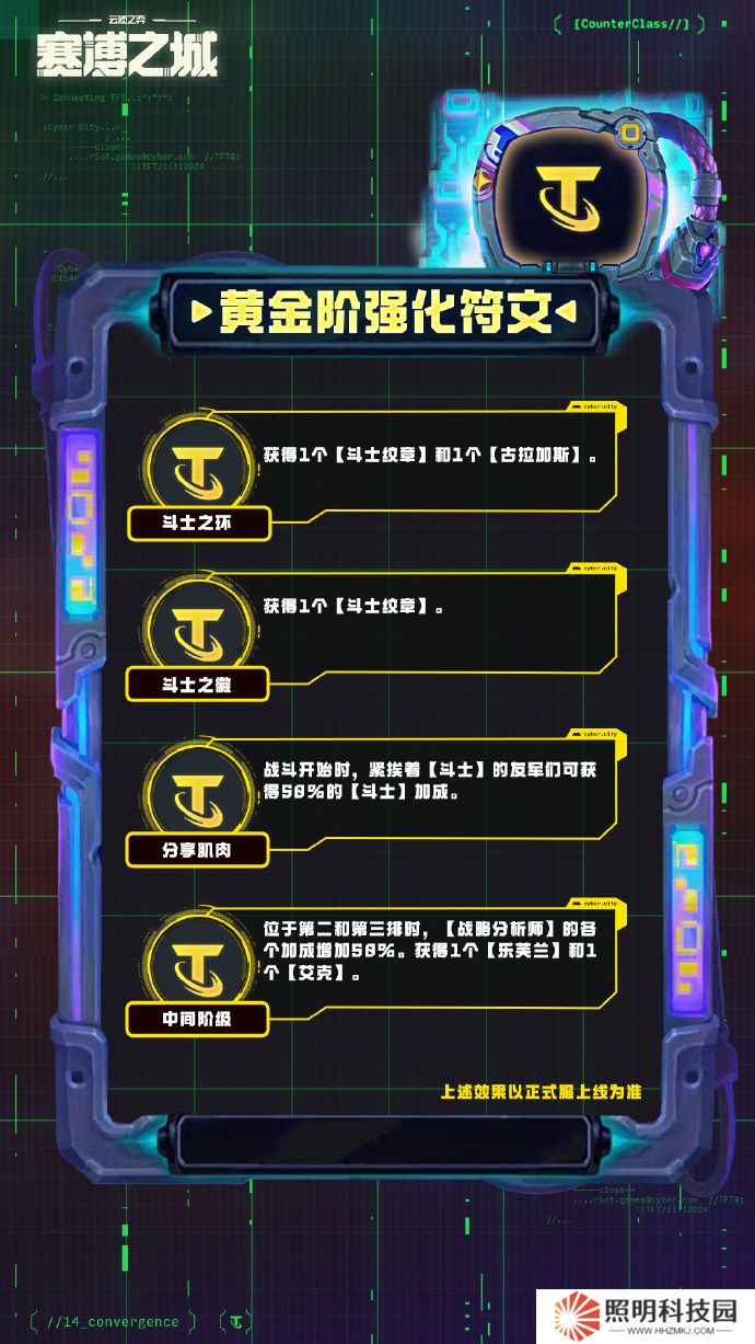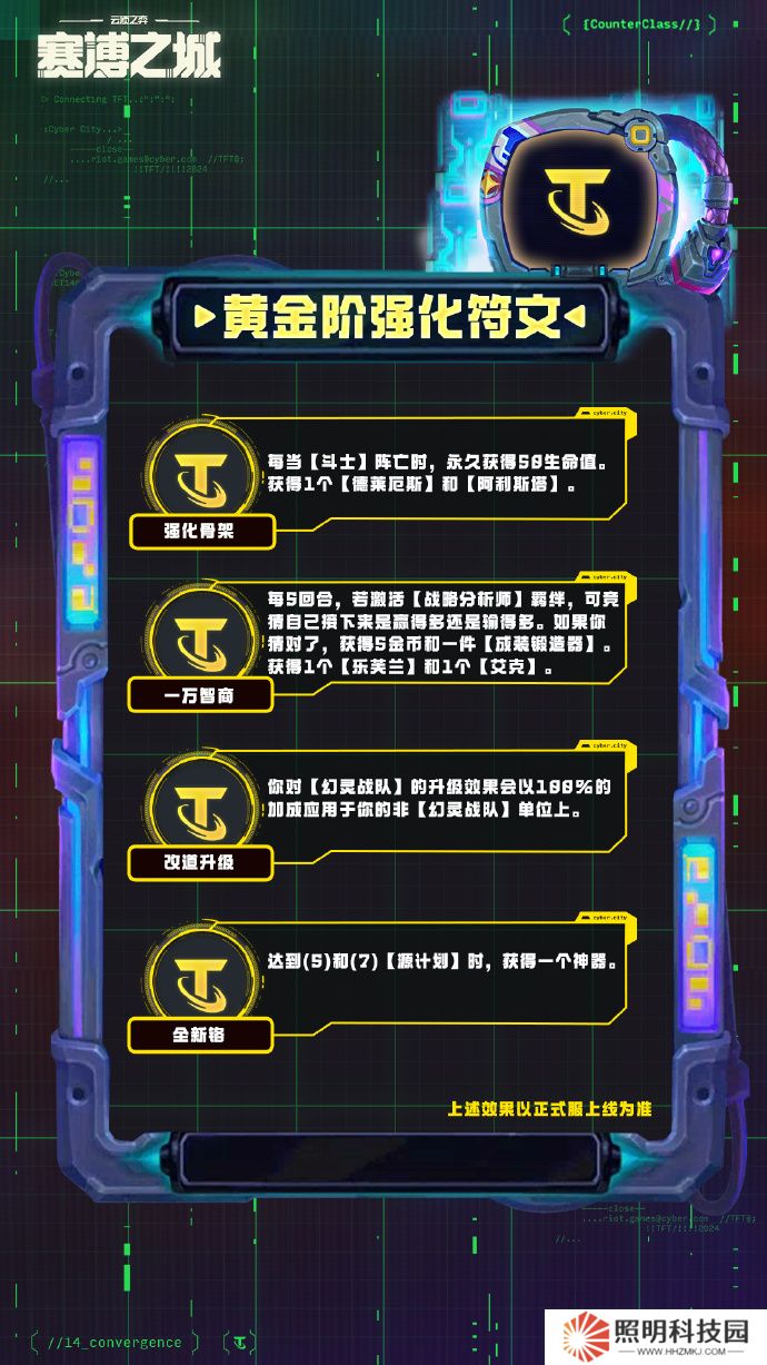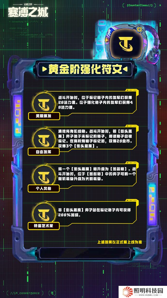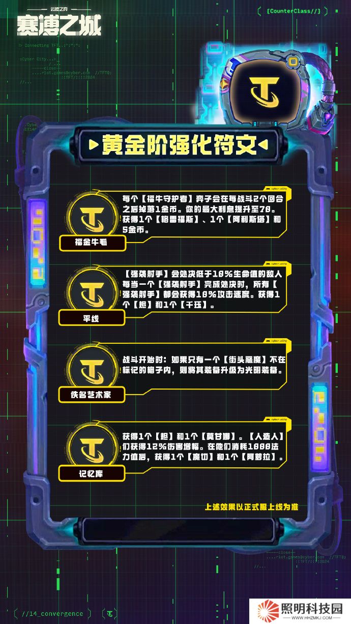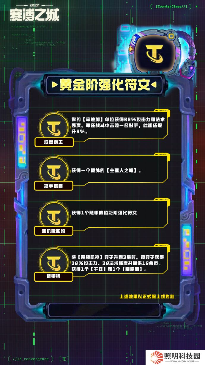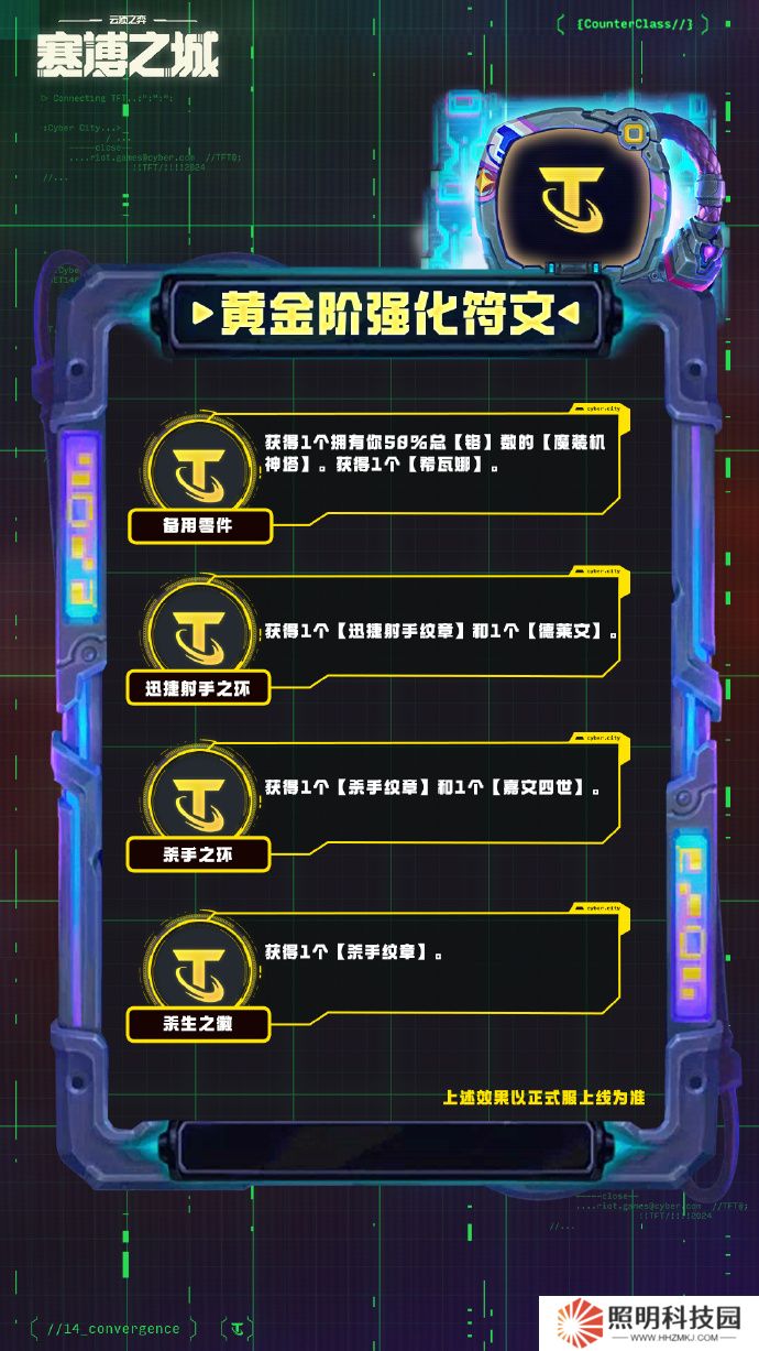 云頂之弈即將迎來S14賽季賽博之城,在這個賽季將會上線全新的黃金階強化符文,那么大家知道黃金階強化符文究竟是怎么樣的呢?下面快跟隨本站小編為大家?guī)淼脑祈斨腟14黃金階強化符文吧。