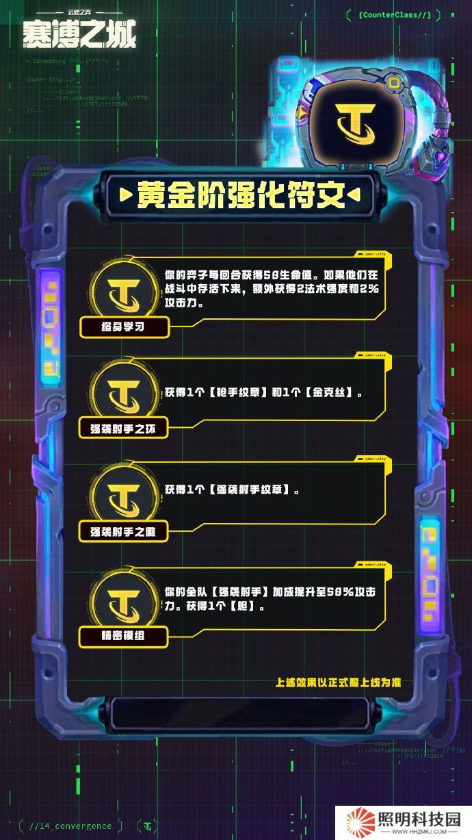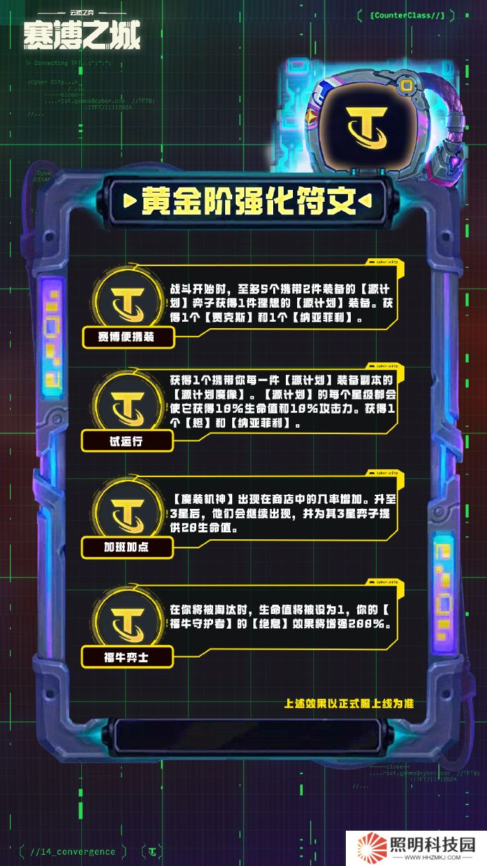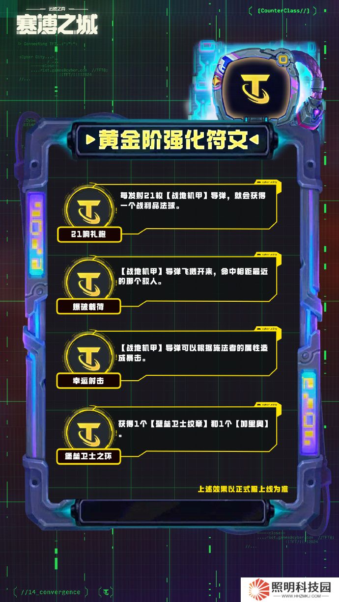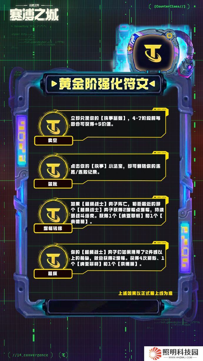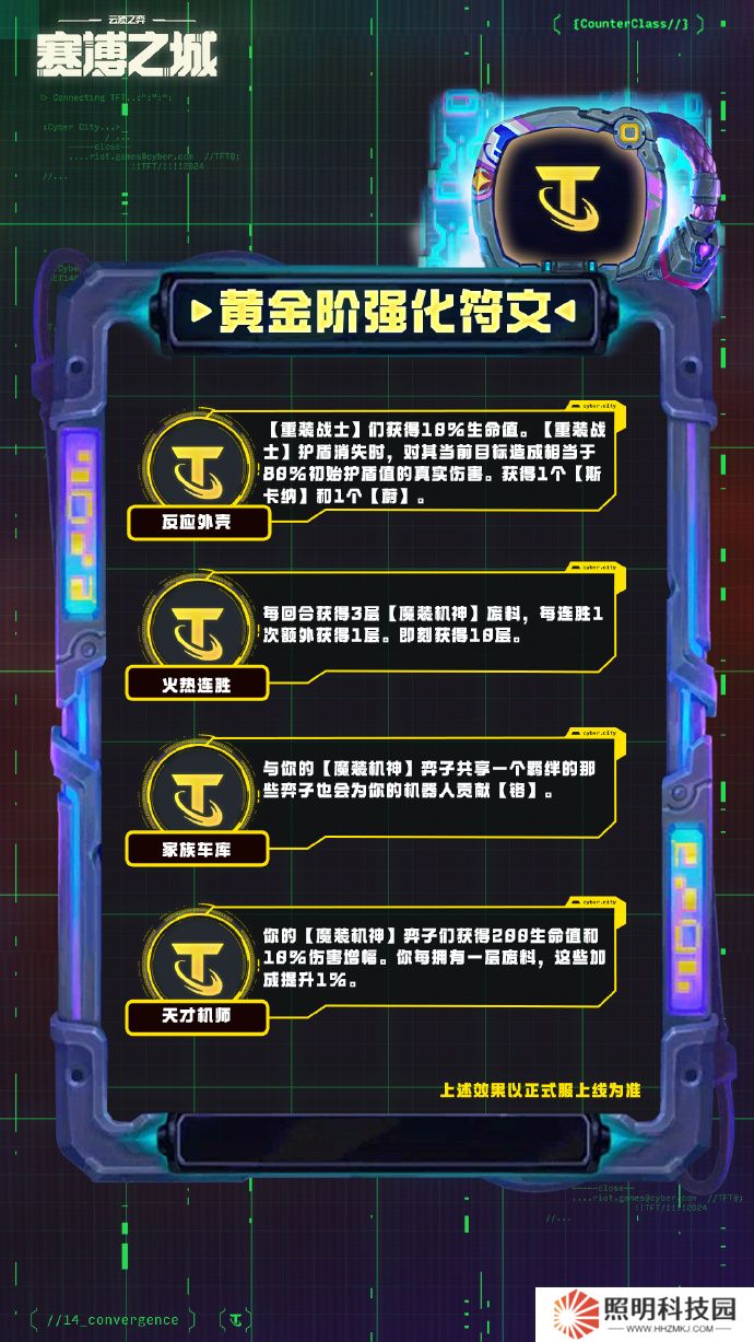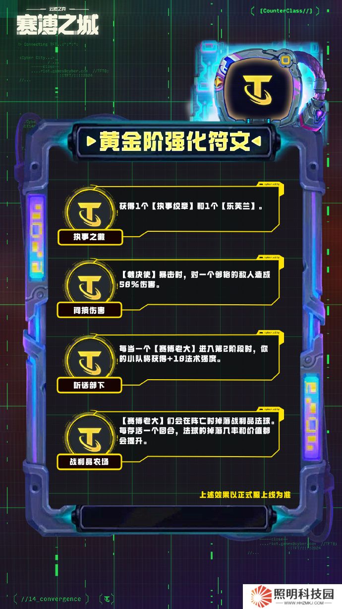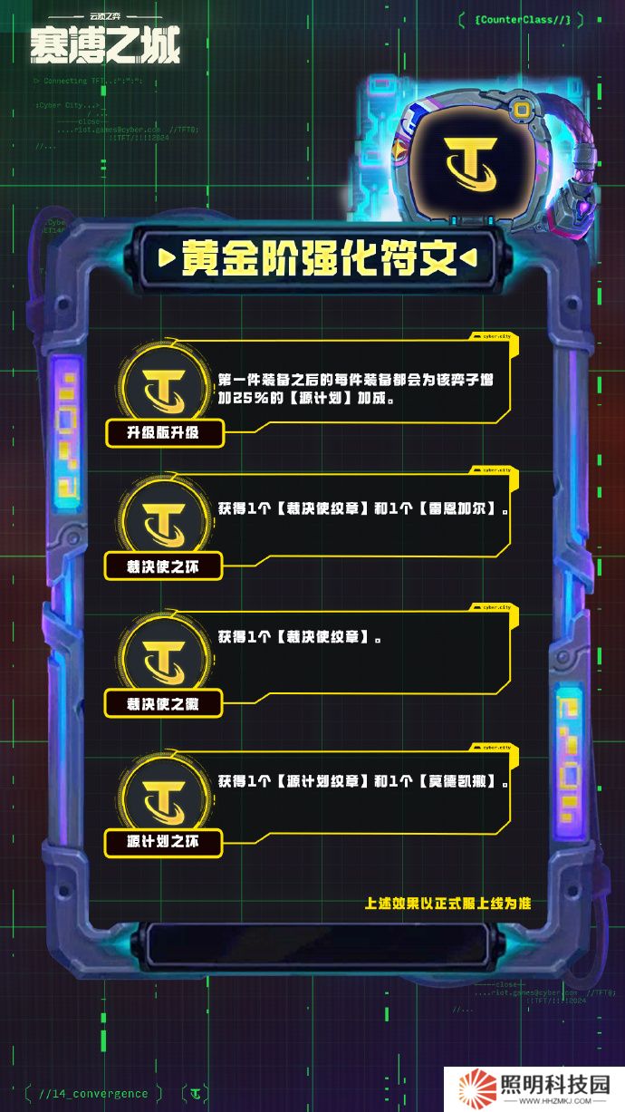 云頂之弈即將迎來S14賽季賽博之城,在這個賽季將會上線全新的黃金階強化符文,那么大家知道黃金階強化符文究竟是怎么樣的呢?下面快跟隨本站小編為大家?guī)淼脑祈斨腟14黃金階強化符文吧。