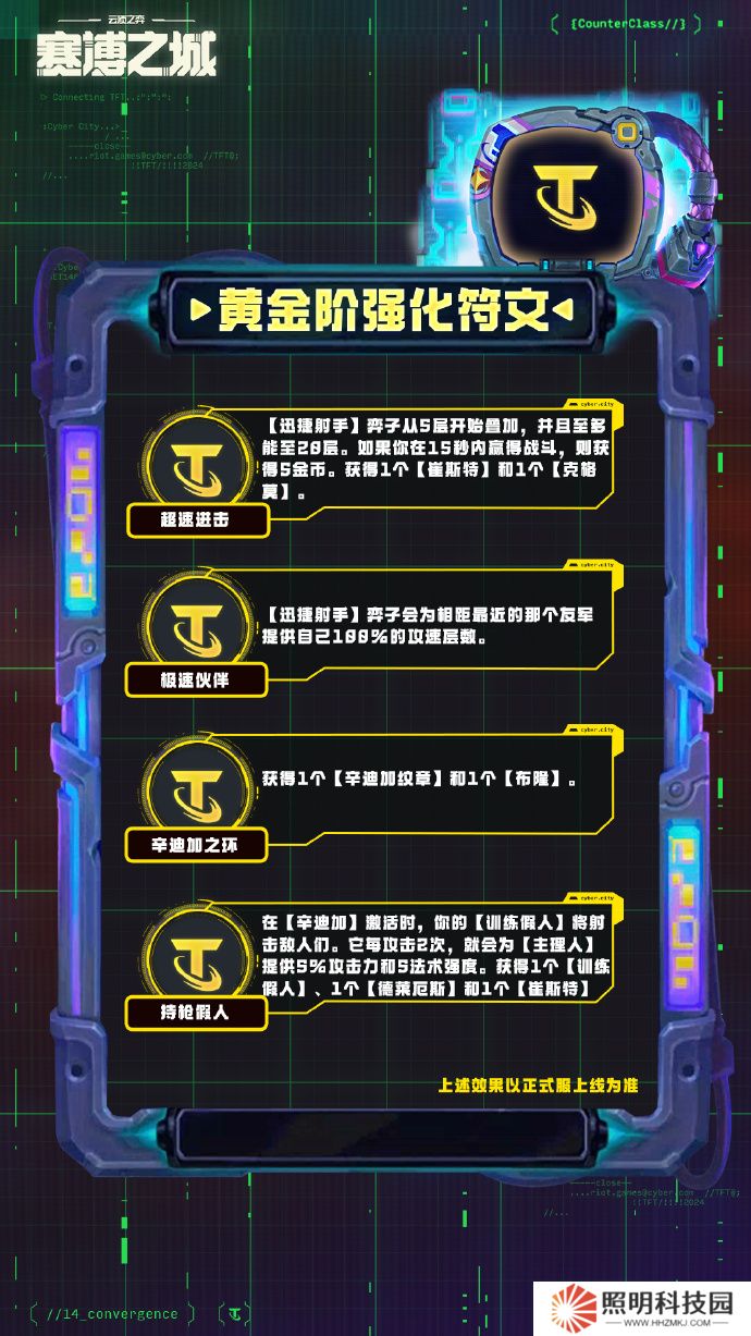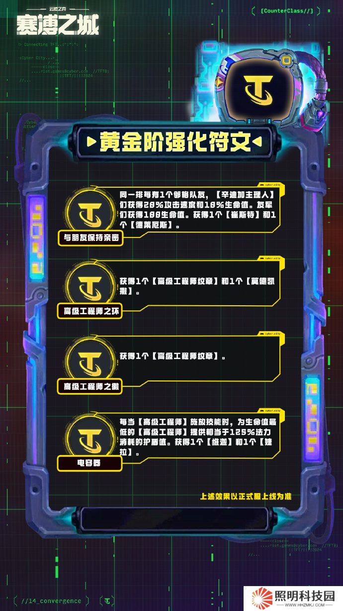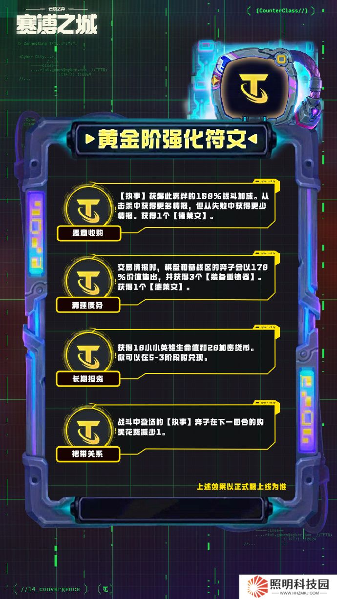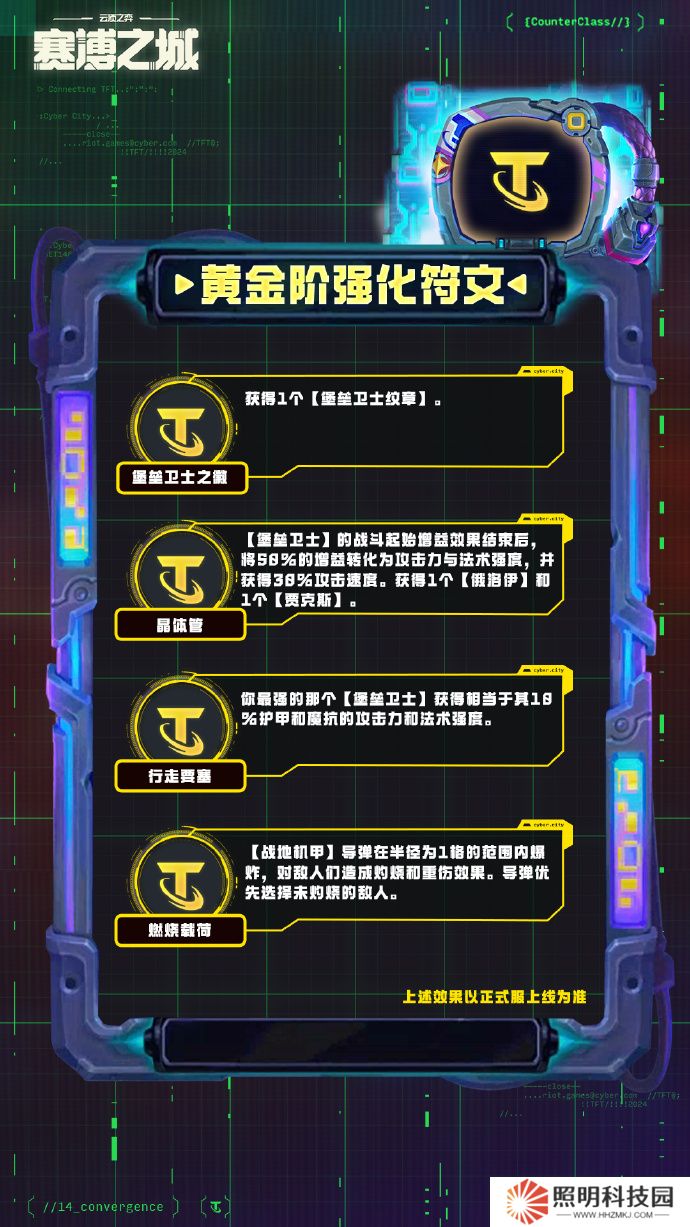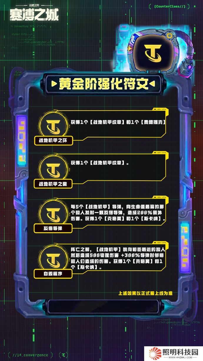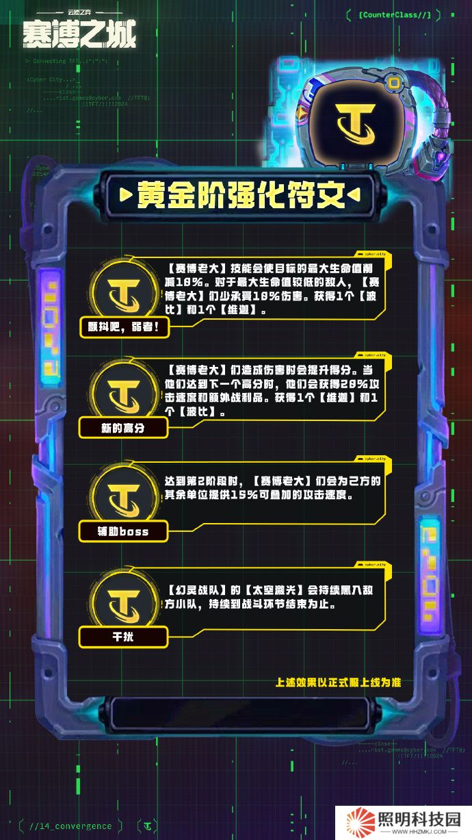 云頂之弈即將迎來S14賽季賽博之城,在這個賽季將會上線全新的黃金階強化符文,那么大家知道黃金階強化符文究竟是怎么樣的呢?下面快跟隨本站小編為大家?guī)淼脑祈斨腟14黃金階強化符文吧。